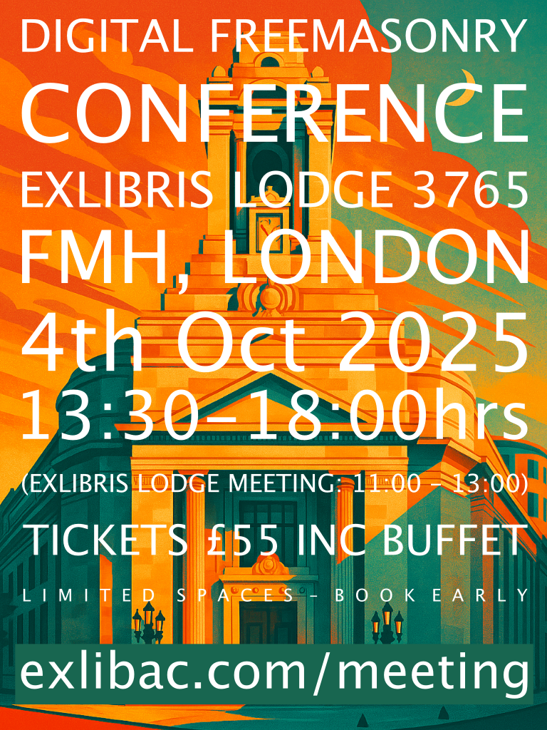 Following the lodge meeting, Ex Libris Lodge will host the 2nd Digital Freemasonry Conference at Freemasons Hall